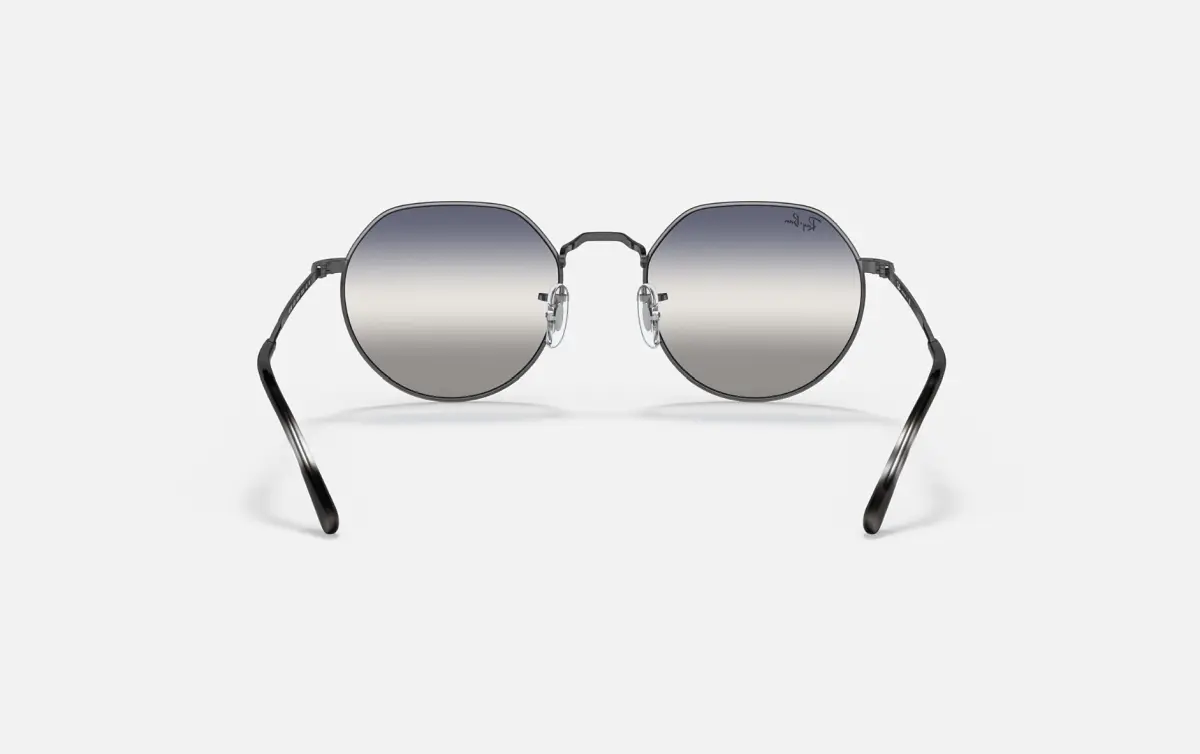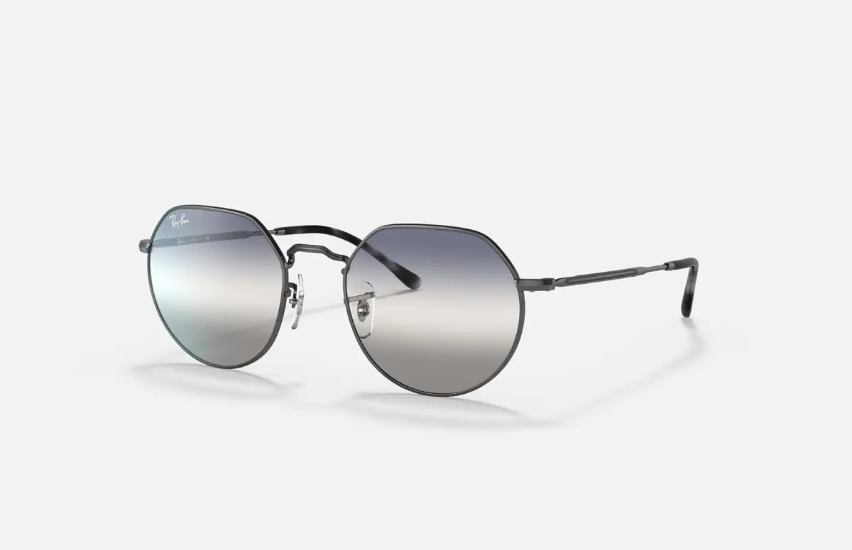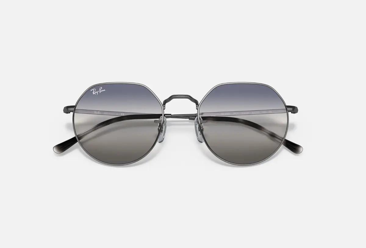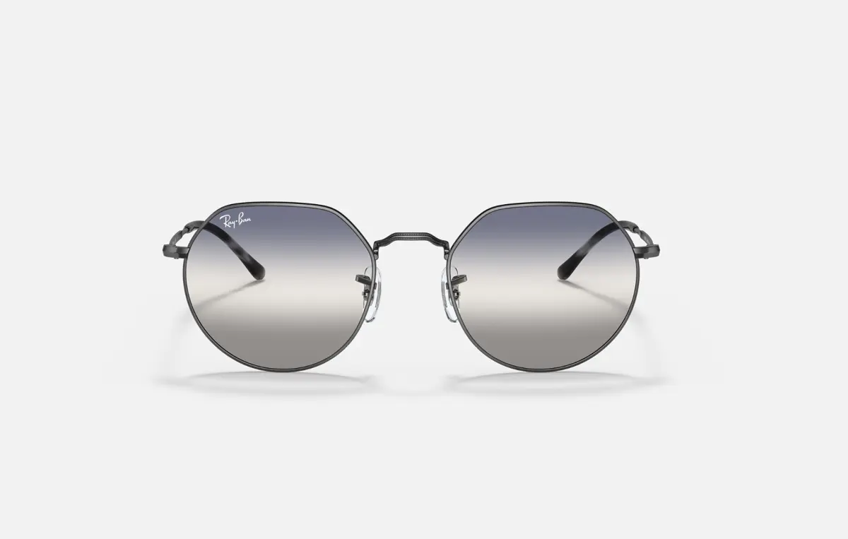 Los Jack reinventan dos íconos de Ray-Ban –Round y Hexagonal– en un diseño irregular que combina lo mejor de ambos mundos. Su montura metálica en Gunmetal pulido aporta elegancia y versatilidad, mientras que los lentes Clear/Blue con tratamiento bi-gradient suman un toque fresco y distintivo.