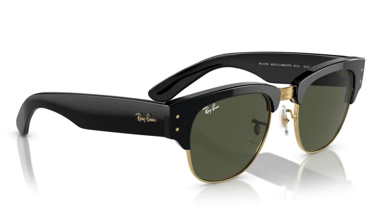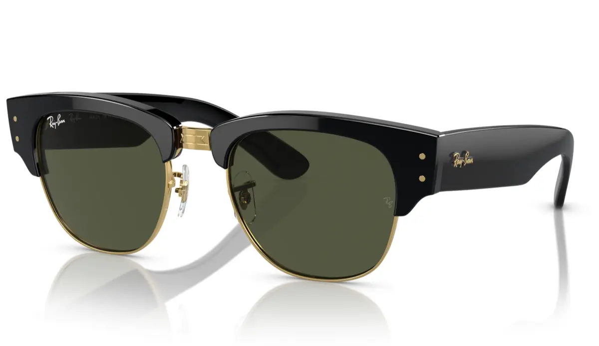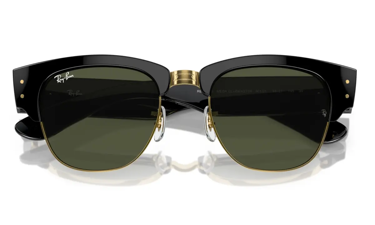 Sumá actitud a tus looks con los Ray-Ban Mega Clubmaster 3016 en su versión negro con lentes verdes. Su diseño cat eye combina estilo retro con un toque moderno. El armazón de acetato negro y los lentes verdes con protección UV hacen de este modelo un ícono para mujeres que buscan destacar con elegancia y seguridad.