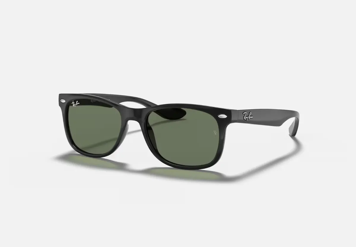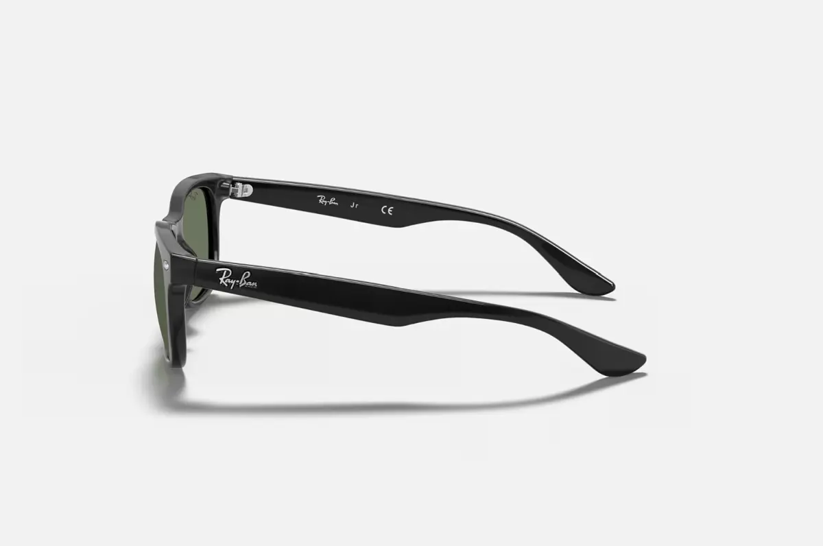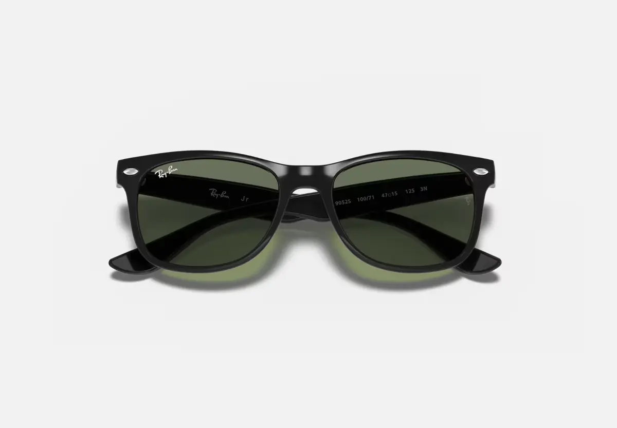 El modelo New Wayfarer Junior Edition trae toda la actitud rockera de Ray-Ban a una versión diseñada especialmente para los más chicos. Su montura cuadrada en negro pulido se combina con lentes verde oscuro de acabado sólido, logrando un look versátil, moderno y lleno de estilo para cualquier ocasión.